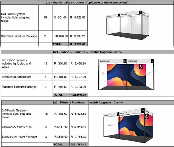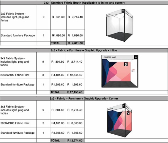 Floor space only, excludes fabric system. ZAR and includes VAT
