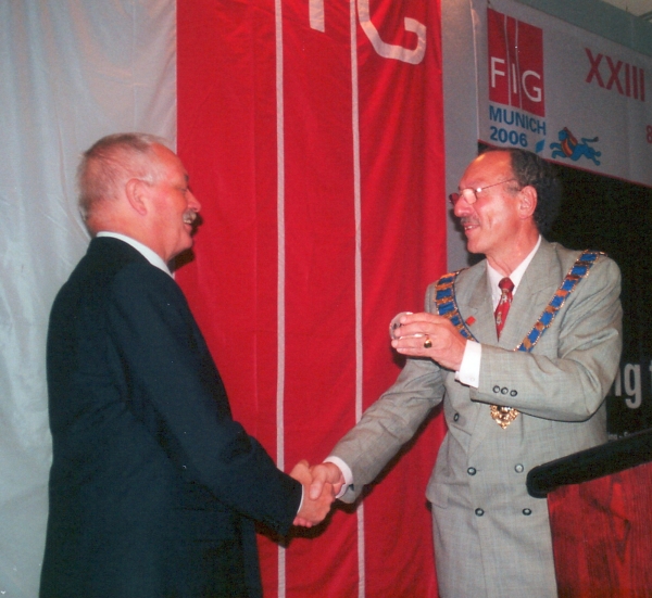 President Magel thanks President Hagen Graeff, DVW for hosting the FIG Congress and gives the FIG globe as a token of the event.