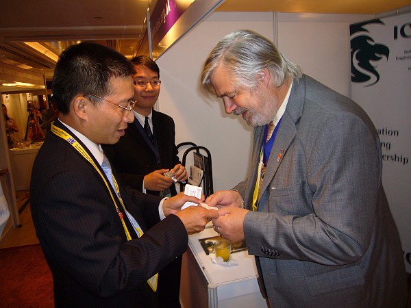 President Raymond Chan, HKIS and John Bacon from ICES, UK in discussion at the ICES booth.