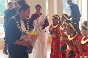 President Diane Dumashie to Ganesh Prasad Bhatta representing the
