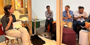 FIG representative, Adil Sait, with Lance Jay Brown (Consortium for Sustainable Urbanisation) and Mona Rady (International Union of Architects) at the Habitat Professionals Forum, 4th Nov. 2024 FIG representative, Adil Sait, speaking at the Habitat Village, session moderated by Dr. Lucy Natarajan (UCL), 6th Nov. 2024 (Photo kindly taken by Dr. Michael Short, UCL).