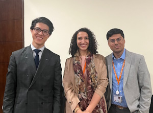 FIG representative, Adil Sait, with urban professionals Antonio Rovira, BuroHappold; and Roland Chanin-Morris, Ramboll, 8th November 2024. FIG representative, Adil Sait, with Andrés Chama Avilés, International Urban Coordinator, Ministry of Foreign Affairs of the Government of Mexico; and Zeina El-Zein, UN-Habitat Youth Advisory Board, at the WUF12 Advisory Group, 8th November 2024.