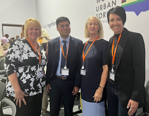 FIG representative, Adil Sait, with Dyan Currie, UN-Habitat Stakeholder Advisory Group Enterprise (SAGE); Lindsey Richards, President Royal Town Planning Institute (RTPI); and Jua Cilliers, President Commonwealth Association of Planners, 4th November 2024. FIG representative, Adil Sait, with other members of the Habitat Professionals Forum, 4th Nov. 2024
