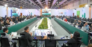 UN-Habitat Executive Director congratulating the WUF12 Advisory Group on their efforts on the Cairo Call to Action, 8th Nov. 2024 View of the Room from the Civil Society Roundtable, chaired by Prof. Siraj Sait (UEL) (Image from IISD reporting for 8th November 2024)