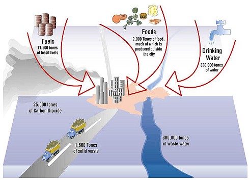 Cities consume massive amounts of environmental goods and services –