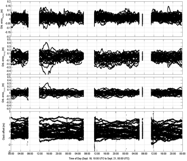 The quality of the precise orbits and clock corrections included in the augmentation messages has a direct impact in the achievable accuracy and convergence time of the PPP solutions. In this section we present the quality of the orbit and clock corrections included in the MADOCA-LEX messages. The orbit and clocks evaluated in this section were calculated from MADOCA-LEX messages collected in Melbourne between September 18 and September 20, 2013.