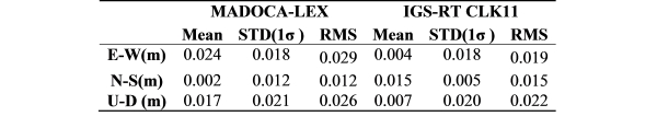 Table 8. Positioning errors for kinematic PPP using IGS-RT (CLK11) products
