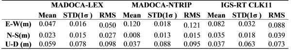 Table 7. Positioning errors for kinematic PPP using MADOCA-LEX products
