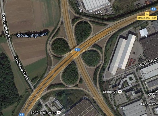 Figure 1. Autobahn junction Böblingen-Hulb on Google Maps Satellite View