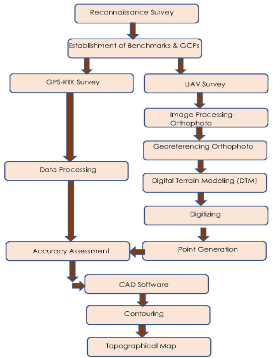 General mapping surveying is done by either ground and photogrammetric