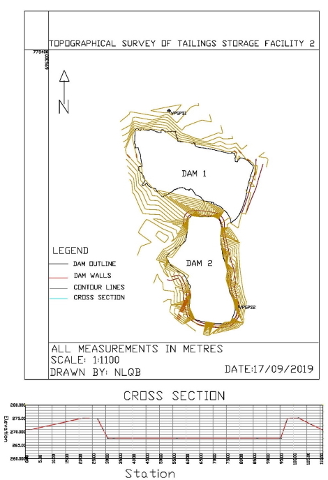 contours at 5 m interval were generated. Cross sections across the TSF