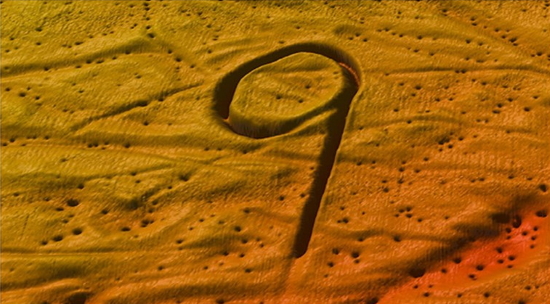 Ploughmarks from drifting icebergs that scraped along the bottom in the Barents Sea. The "9" is about 1000 m long and 5-6 m deep that was formed at the end of the last ice age 10000 – 15000 yeras ago.
