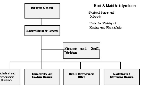 And once being built up it is nearly impossible to change this organisational structure. Sometimes this can happen the other way round as well. Denmark for example the cadastral department (part of Minister of Agriculture), the Geodetic Institute (part of Minister of Defense) and the Nautic Mapping Division (part of Minister of Traffic) amalgamated in 1989 and established the Danish Survey and cadastre.