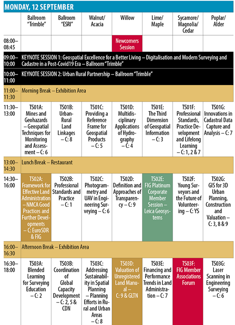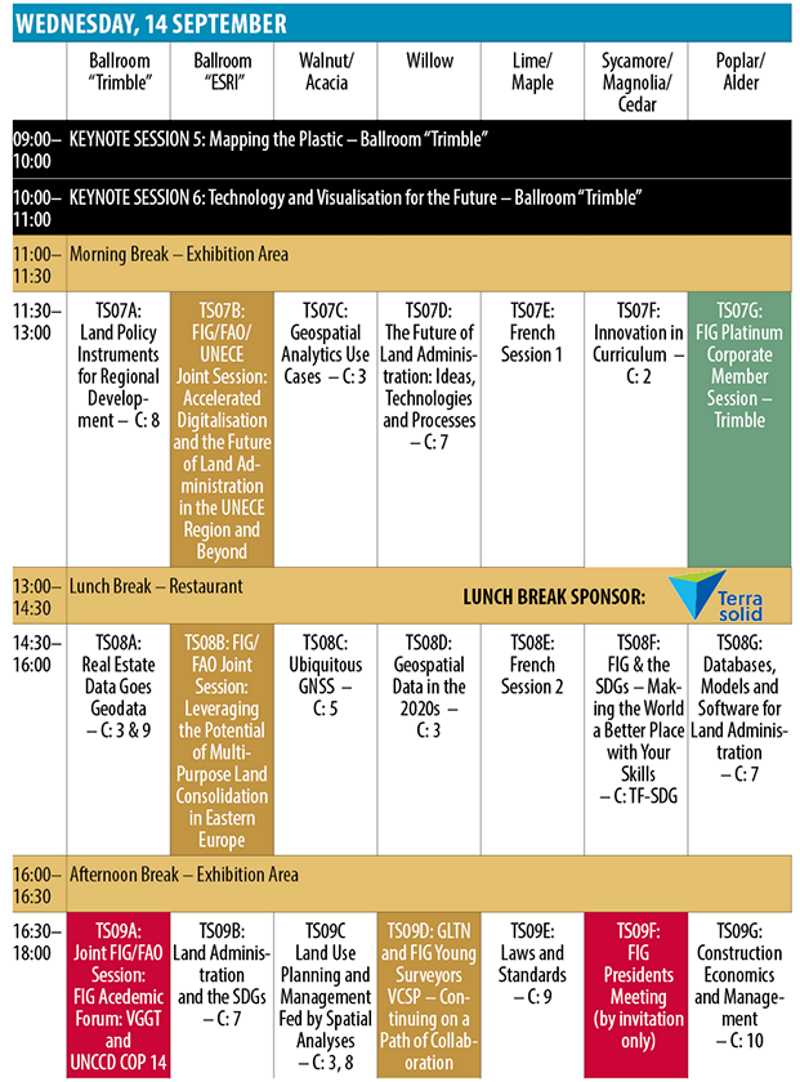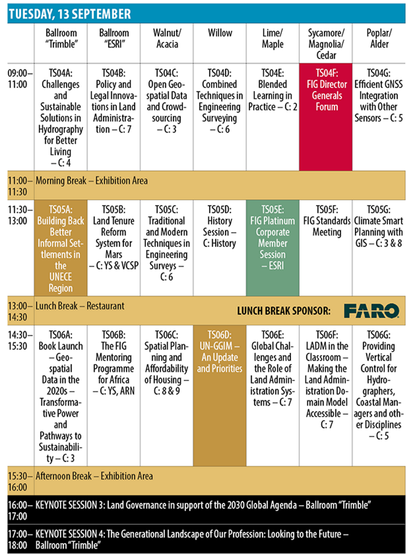 | 13.00-14:30 | FIG General Assembly session 2 | Lunch Commission meetings |
