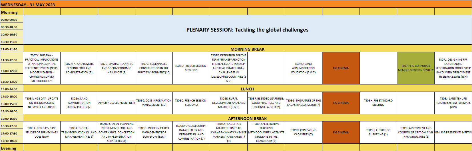 9:00-11:00 FIG General Assembly Plenary session Plenary session Plenary session FIG General Assembly