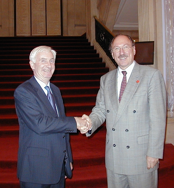 President Holger Magel and Director, FIG Office visited the two FIG member associations in UK December 2-3, 2004. President Magel gave an evening lecture at the RICS on the 2nd of December to an audience that filled the Lecture Hall of RICS. The lecture "Surveyors and politics - the need for dialogue" will be posted on this web site within short. The lecture was followed by a reception and dinner which allowed discussions on the co-operation between FIG and British surveyors.