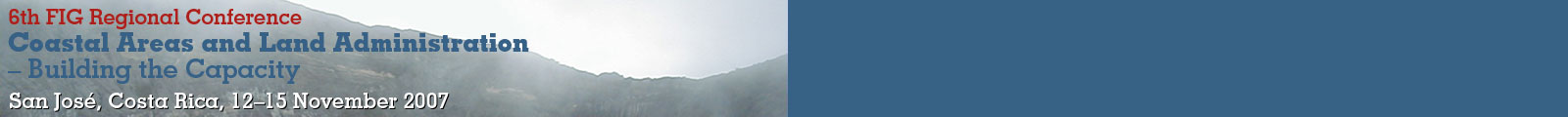 This was the first time that the FIG Regional Conference was held in Latin America. Costa Rica offers best possible venue for such an important event. The theme of this regional event was selected so that it focused on the hot topics in the region which are capacity building, land administration and environmental issues, especially the use and future of coastal regions. Based on the outcome of the conference “Coastal Areas and Land Administration – Building the Capacity” FIG will also prepare an FIG publication “Methodologies for Pro-Poor Coastal Zone Management