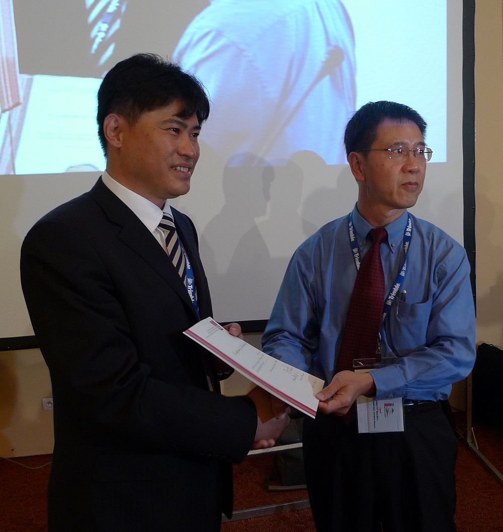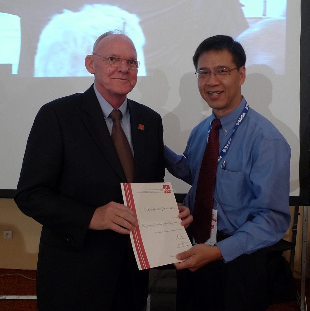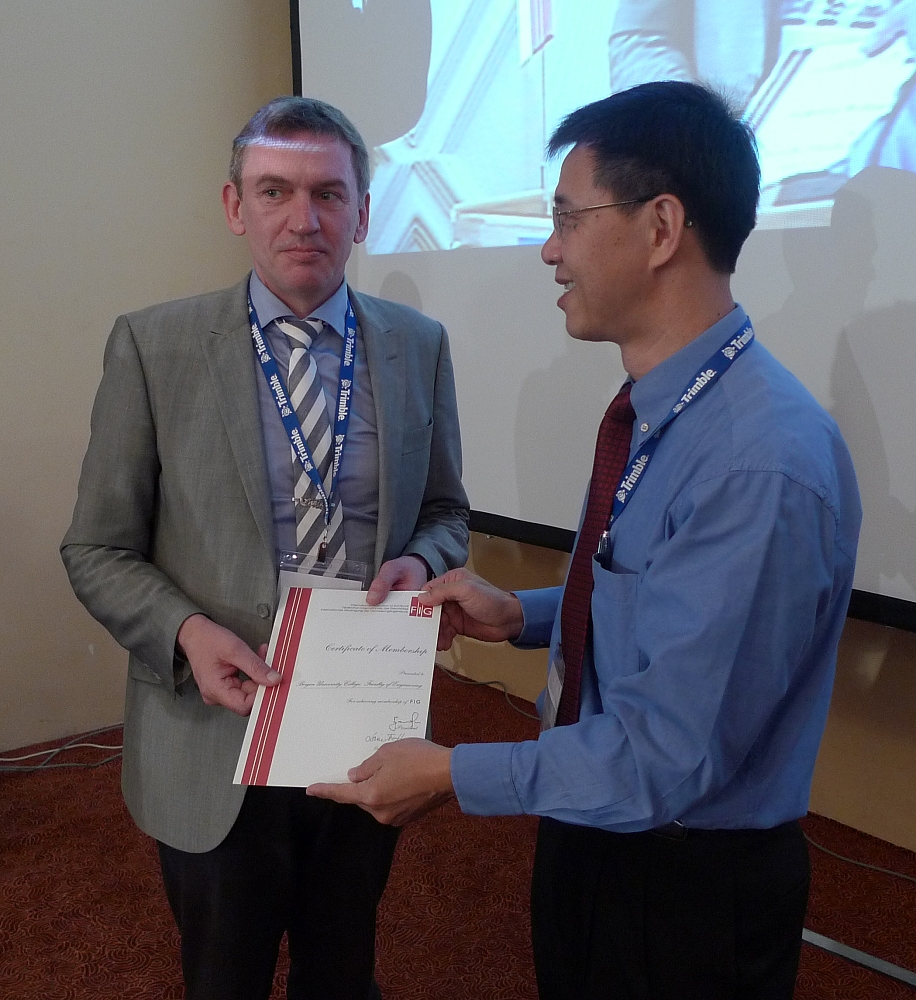 Director General Zheng Ling Zhi from the China Land Surveying and Planning Institute receiving the membership certificate from President Teo as new affiliate member.