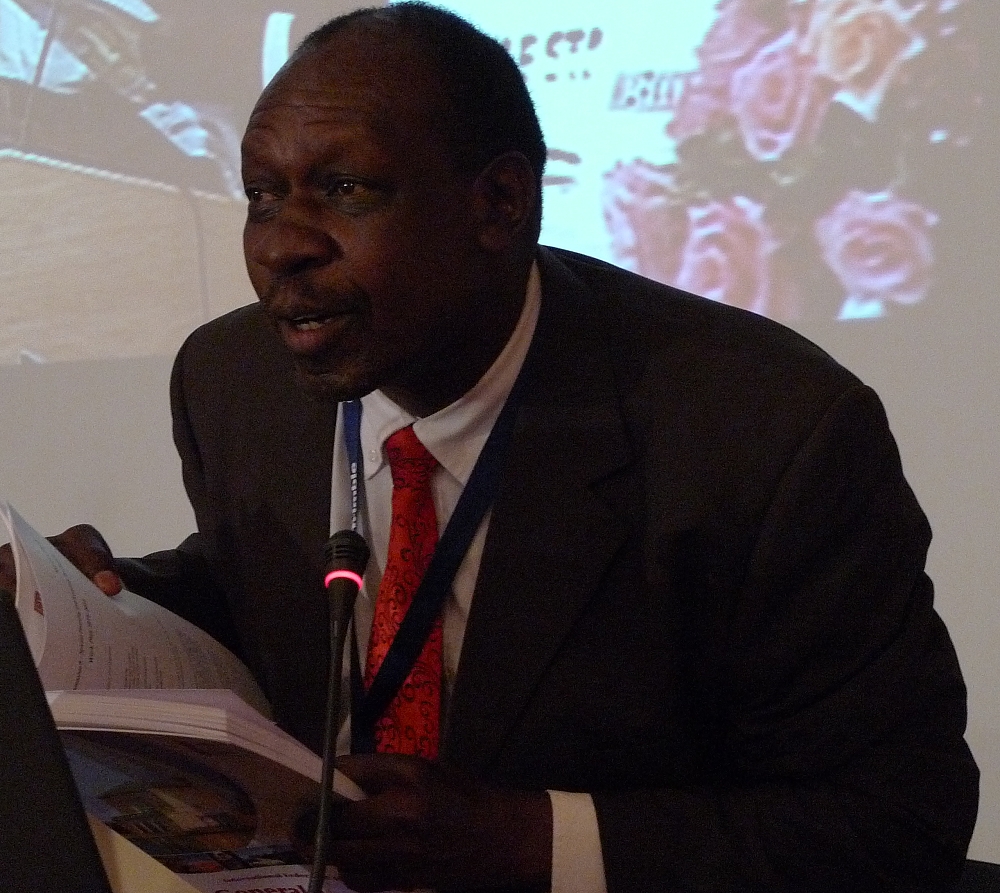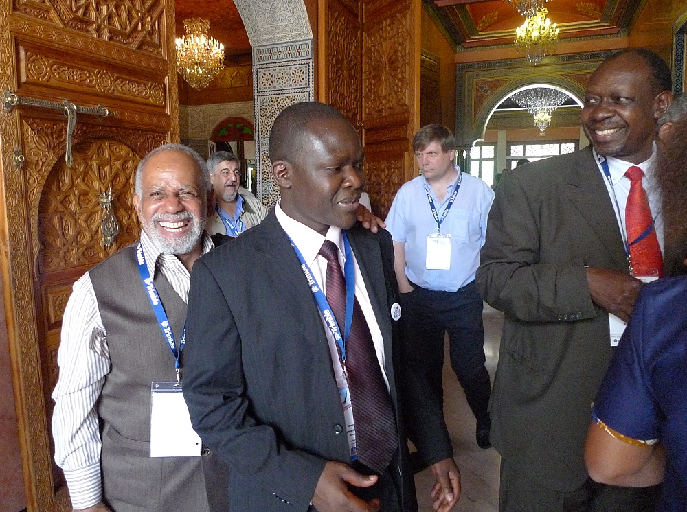 Mr. Mamadou Ndir, President of ONGES from Senegal assisted by Vice President Rudolf Staiger in translating his speech to the  meeting.