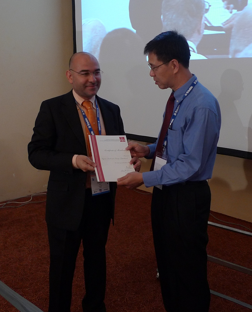 Mr. Varnavas Pashioulis' receives the membership certificate on behalf of the Director General of the Cyprus Lands and Surveys Department.
