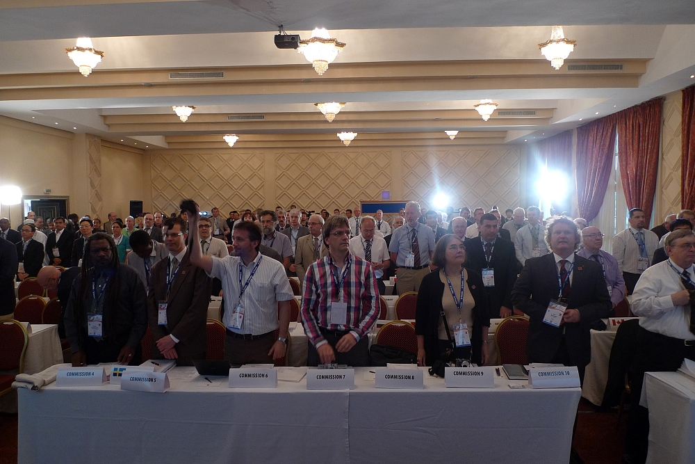Commission chairs listening to the presentation of Commission 10.