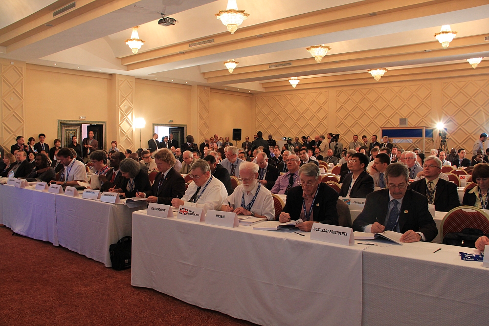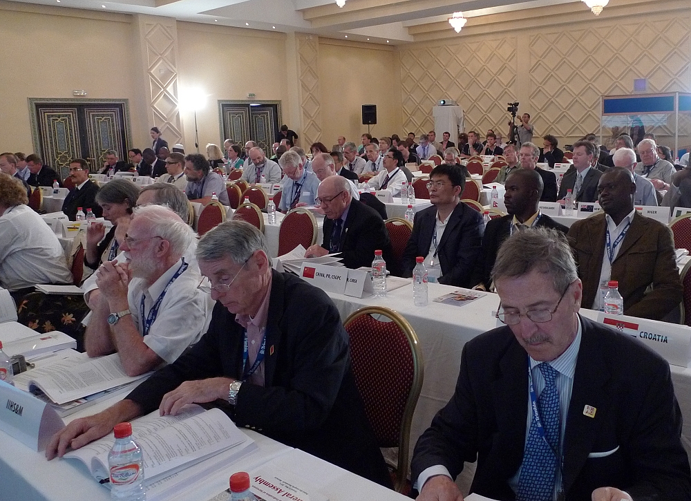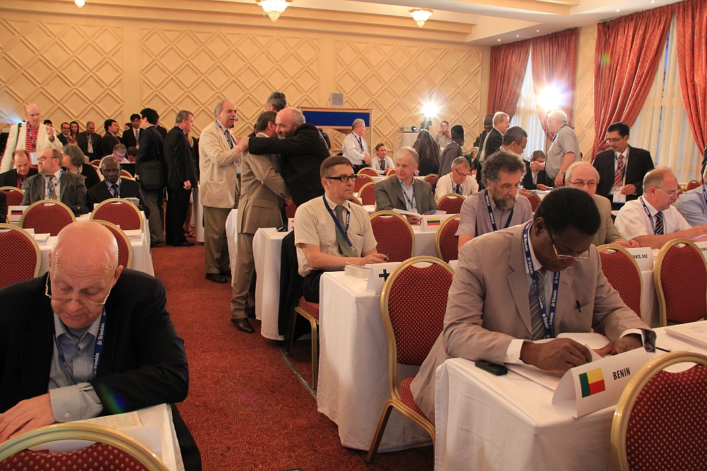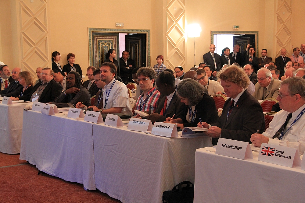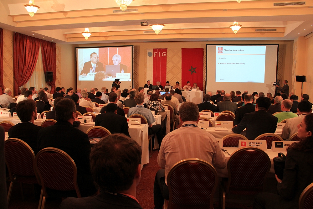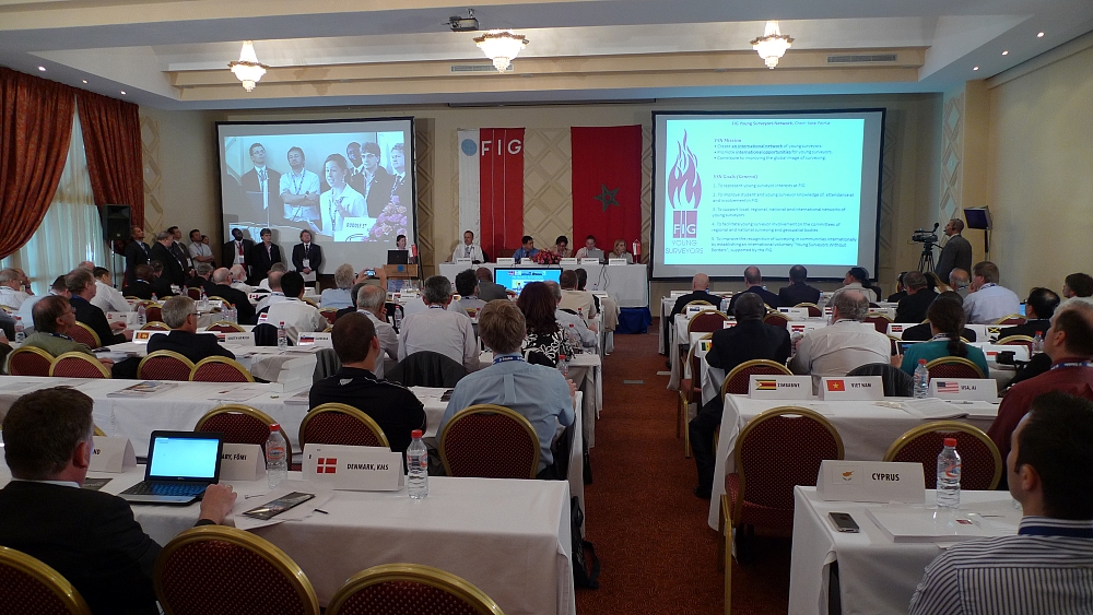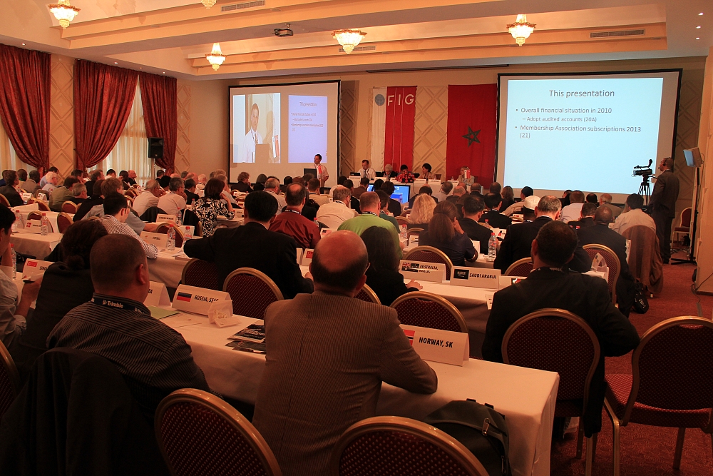 The first session of the FIG General Assembly was held at the fully packed Salle Mazagan at the Ryad Mogador Hotel.