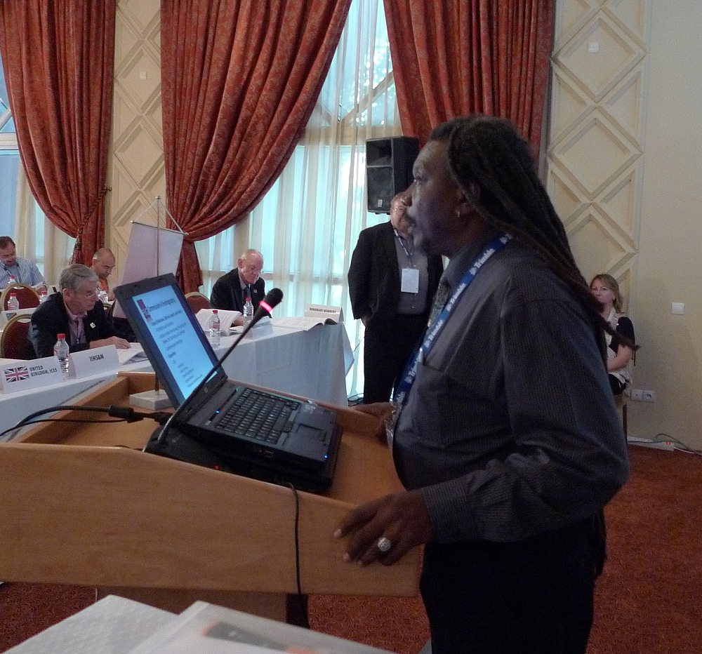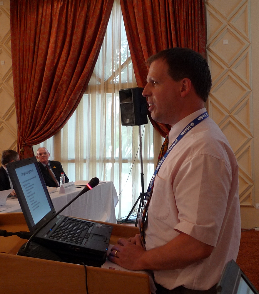 John Hannah, Chair of FIG Task Force on Surveyors and the Climate Change, explaining the agenda of this new Task Force to the General Assembly