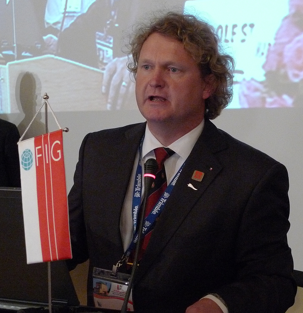 Alan Wright making the report on behalf of the International Institution for Surveying and Measurement on behalf of the chairperson.
