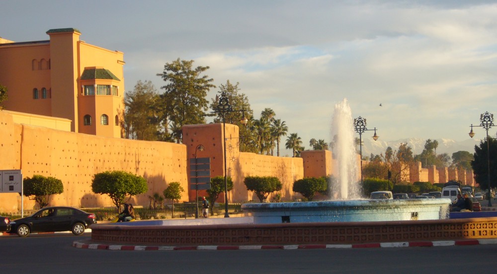 City wall around the medina of Marrakech. |