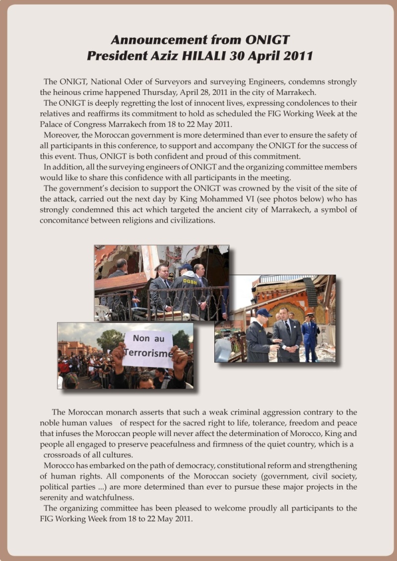 FIG WW Marrakech 2011 and confirmed that all departments are engaged