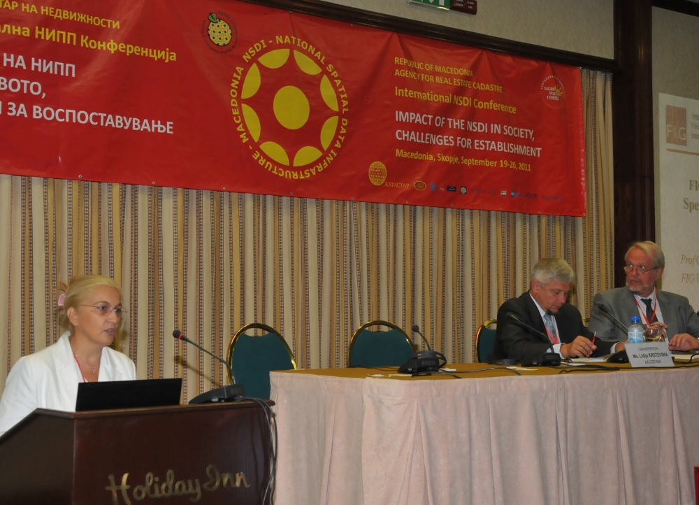 The International NSDI Conference on “Impact of the NSDI in the society, Challenges for establishment” was held in Skopje between the 19th and 20th of September 2011. It was organized by the Agency for Real Estate Cadastre (AREC) and the Faculty of Civil Engineering. FIG and EuroGeographics were co-organizers. FIG was represented by vice President Chryssy Potsiou, who presented the 2011-2014 Work Plan of FIG and its major targets. The conference was also supported by the World Bank, the Netherlands Kadaster, Swedesurvey AB, City of Skopje, GDi GIS Data, IGEA Mak, as well as by Asseco SEE.