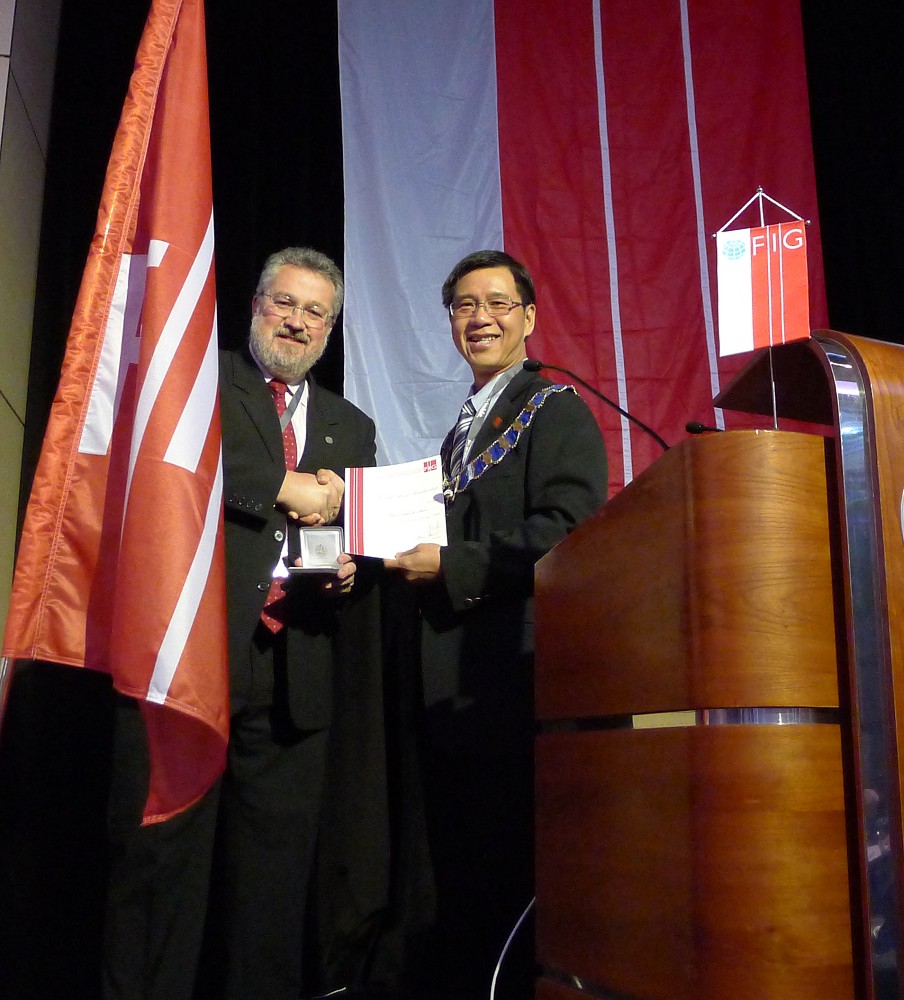 Matt Higgins was appointed as an Honorary Member of FIG - the badge and certificate were received on his behalf by Rob Sarib.