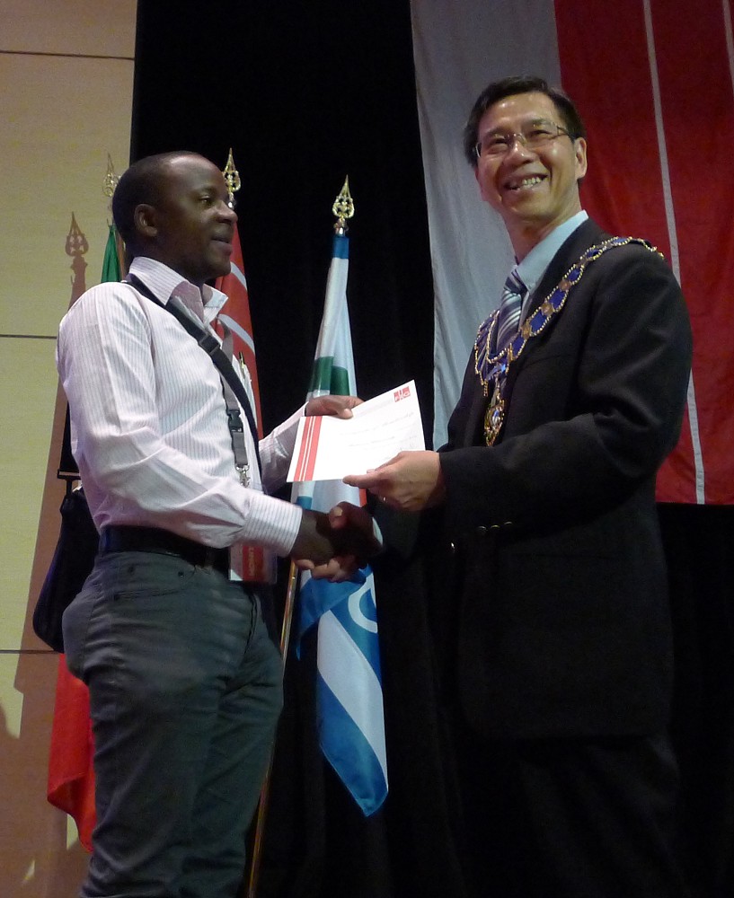 Ronald Ssengendo receiving the membership certificate on behalf