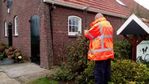 A Kadaster surveyor involved in a cadastral survey, Zwolle