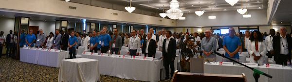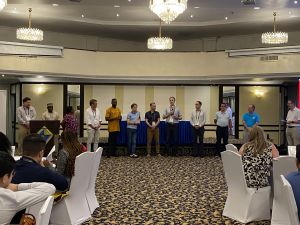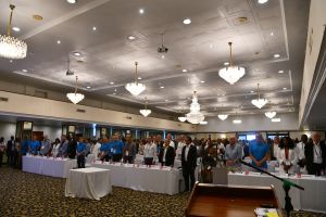him to his seat in front of the scene. Master of Ceremony and Co-Conference Director, Steven Djaba, welcomed
