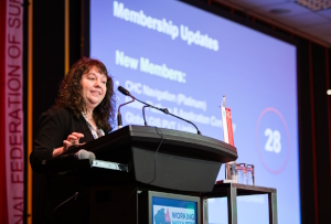 FIG President Diane Dumashie talks to the General Assembly