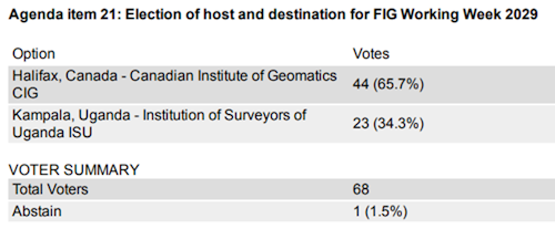 - ELECTION OF HOST AND DESTINATION FOR FIG WORKING WEEK 2029 - RESULT