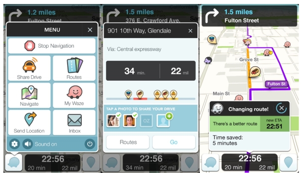 used location based services: OpenStreetMap (OSM), and Waze.