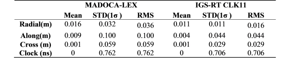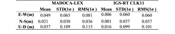 Table 3. Orbit and clock errors of MADOCA-LEX and IGS-RT products