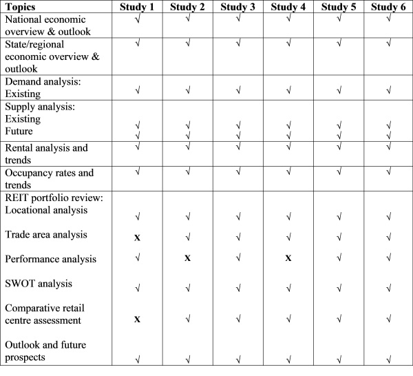 real estate market studies. Content analysis using the criteria is