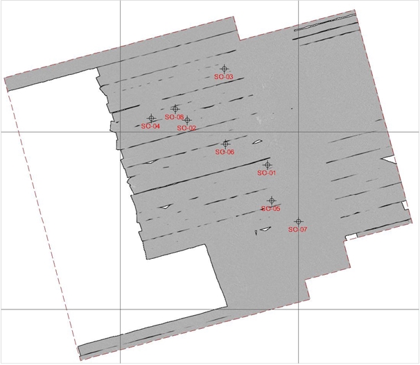 Figure 7 SSS mosaic with markers of Suspected Object (SO) in Area-3