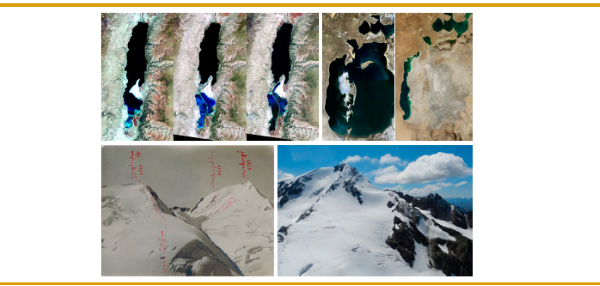 boundaries in lakes, showing examples of the shrinking of the Aral Sea and